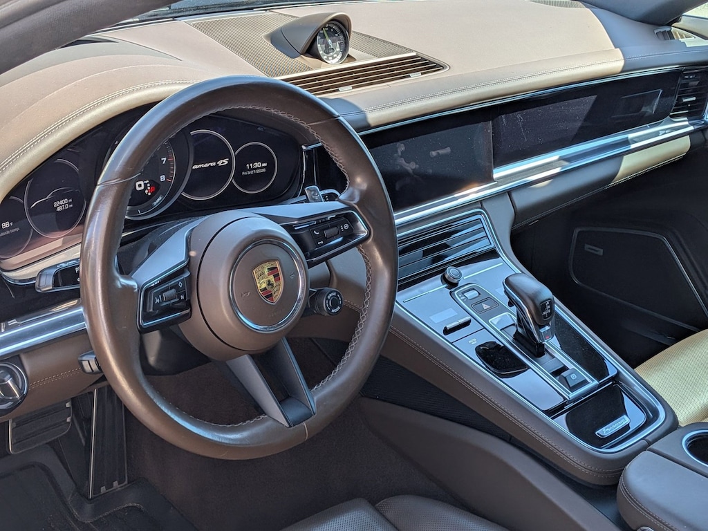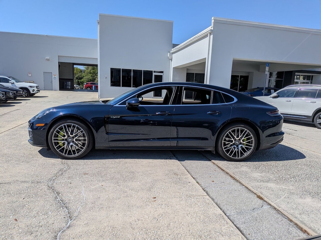 Thank you for your interest in one of Porsche of Orlando's online offerings. Please continue for more information regarding this 2021 Porsche Panamera 4S E-Hybrid with 22,399mi. This Porsche includes: REAR 2+1 SEATS Rear Bench Seat Pass-Through Rear Seat PREMIUM PACKAGE Multi-Zone A/C Heated Rear Seat(s) Cooled Front Seat(s) A/C Climate Control Power Passenger Seat Power Driver Seat LED Headlights Heated Front Seat(s) Passenger Adjustable Lumbar Blind Spot Monitor Premium Sound System Rear A/C Driver Adjustable Lumbar HEAD-UP DISPLAY Heads-Up Display SURROUND VIEW Rear Parking Aid Back-Up Camera NIGHT BLUE METALLIC SADDLE BROWN, LEATHER SEAT TRIM Leather Seats 14-WAY POWER SEATS W/MEMORY PACKAGE Power Passenger Seat Power Driver Seat Passenger Adjustable Lumbar Driver Adjustable Lumbar 7.2 KW ONBOARD CHARGER ADAPTIVE CRUISE CONTROL (ACC) Adaptive Cruise Control WHEELS: 21" 911 TURBO DESIGN II Tires - Front Performance Tires - Rear Performance *Note - For third party subscriptions or services, please contact the dealer for more information.* This Porsche Panamera 4S E-Hybrid's level of quality is not meant for just anyone. It's meant for the person who strives for a classy, comfortable, and luxurious car. This Porsche Panamera 4S E-Hybrid comes equipped with all wheel drive, which means no limitations as to how or where you can drive. Different terrains and varying weather conditions will have little effect as to how this vehicle performs. One of the best things about this Porsche Panamera is that it has low, low mileage. It's ready for you to truly break it in. Added comfort with contemporary style is the leather interior to heighten the quality and craftsmanship for the Porsche Panamera 4S E-Hybrid. You'll quickly realize how much you will need a navigation system once you are stopping for directions or looking up addresses on your phone instead of looking at the road. This Porsche Panamera 4S E-Hybrid features a navigation system that will free you of these unnecessary headaches. This gently driven vehicle has been well-kept and still has the showroom shine. A simple firing of the ignition is all you need to know this awesome machine has speed. The kind that is supercharged with adrenaline. When this vehicle was shipped from the factory, Porsche decided that no option should be left off of this magnificent automobile. So, if you're in the market for a Porsche Panamera 4S E-Hybrid that is equipped with copious amounts of options, then we may just have the perfect vehicle to suit your needs.